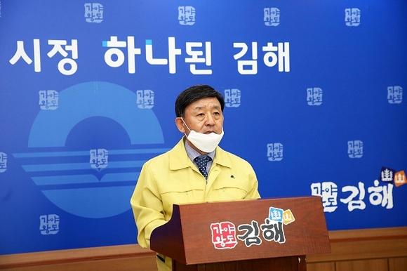 허성곤 김해시장은 24일 시청 프레스센터에서 전날 코로나19 김해 첫 확진자 발생과 관련한 긴급 브리핑을 갖고 확산 방지에 최선을 다 하겠다며 확산 방지를 위한 행정적 조치에 시민들의 적극적인 협조를 구했다.