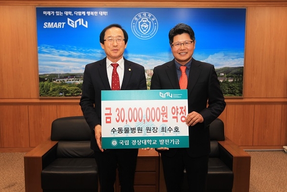 경상대학교는 최근 경북 영주에 위치한 수 동물병원 최수호 원장이 대학발전기금 3000만 원을 약정했다고 밝혔다.
