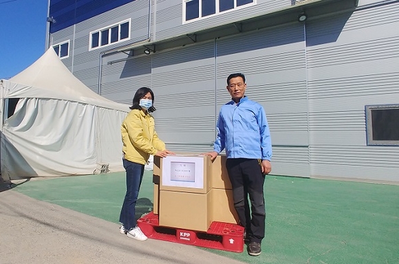 경남 밀양시는 최근 상남면에 있는 지역기업 ㈜그린동화 진민규 대표가 코로나19 확산 방지를 위해 KF94 마스크 1만장을 밀양시에 기증했다고 밝혔다.