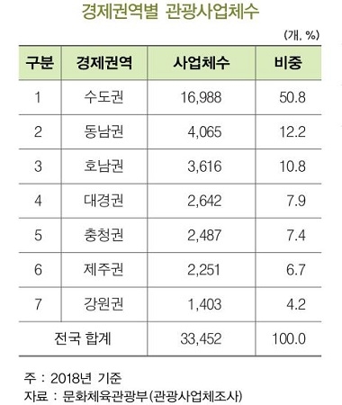 해당 보고서에 따르면 동남권 관광 사업체수는 2018년 기준 4065개, 종사자 수는 2만 7164명으로 수도권을 제외하고 가장 많은 것으로 집계됐다.