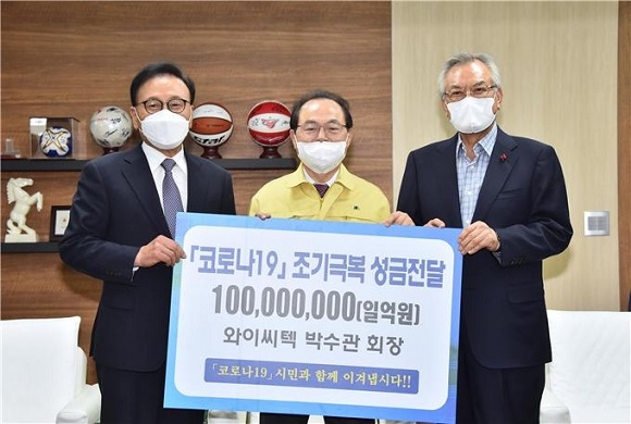 먼저 대한불교 조계종 종정예하에서 이날 전달한 성금 1000만원과 와이씨텍에서 전달한 성금 1억원은 부산사회복지공동모금회를 통해 부산지역 취약계층의 코로나 극복을 위한 지원에 쓰일 예정이다.