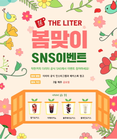 카페 더리터가 3월 한 달간 매주 금요일 인스타그램과 페이스북에서 ‘봄맞이 SNS 고객 이벤트’를 진행한다고 3일 밝혔다.