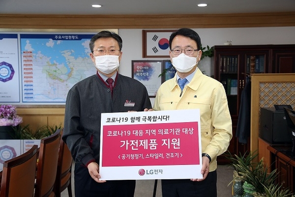 LG전자는 일선에서 혼신을 쏟고 있는 창원지역 의료기관 및 의료진을 위해 기부했다. 기부 가전제품은 지역사회의 일원인 LG전자 창원사업장에서 생산되는 건강관리가전으로 공기청정기, 스타일러, 건조기로 구성됐다.