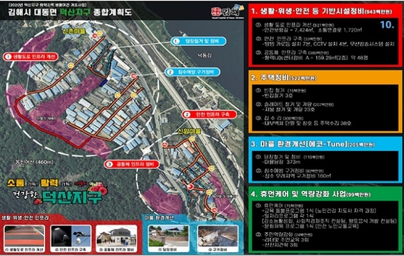 김해시 대동면 덕암리는 주민 대부분이 취약계층에 속하며, 마을 곳곳에 폐축사와 축산분뇨시설이 혼재돼 있고, 30년 이상 노후주택 많은 곳이다. 향후 노후주택 수리, 축산분뇨시설 철거 등을 통해 주민 안전과 정주여건이 크게 개선된다. 아울러 주소득원인 산딸기를 활용한 수익사업이 활성화될 수 있도록 다양한 시설도 지원함으로써 지역사회에 생기를 불어넣을 것으로 기대된다.