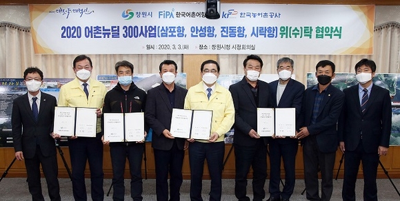 경남 창원시는 3일 시청 시정회의실에서 2020년 정부공모사업으로 선정된 어촌뉴딜300사업의 성공적인 추진을 위해 한국어촌어항공단(FIPA) 및 한국농어촌공사와 사업 위·수탁 협약을 체결했다.
