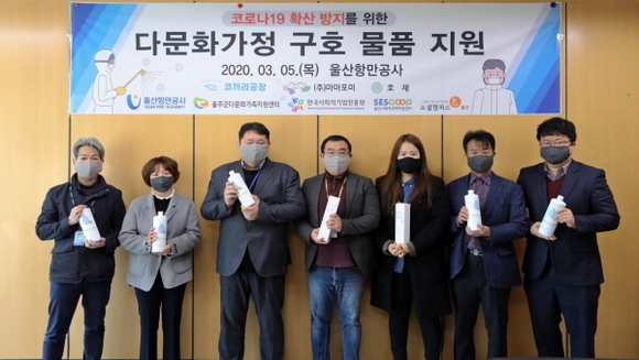 본격적인 지원 활동을 진행하기에 앞서 지난 5일 UPA 11층에서 울주군다문화가족지원센터와 함께 ‘코로나19 지역사회 확산 방지를 위한 다문화가정 구호물품 지원’ 전달식이 진행됐다.
