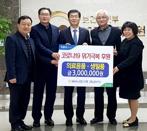 NH농협은행 경남본부는 지난 9일 코로나19 대응병원으로 지정된 국립부곡병원에 위문품을 전달하고 감사와 격려의 마음을 전했다고 10일 밝혔다.