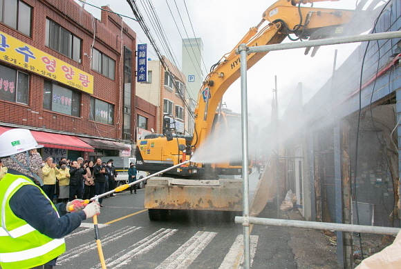 10일 부산시가 구포 가축시장의 역사적인 첫 철거를 진행했다.