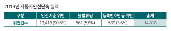한국교통안전공단(이사장 권병윤)은 2019년 자동차안전단속 결과 총 9,657대의 불법튜닝, 안전기준 등을 위반한 불법자동차를 적발해 14,818건의 위반항목을 시정조치했다고 밝혔다.