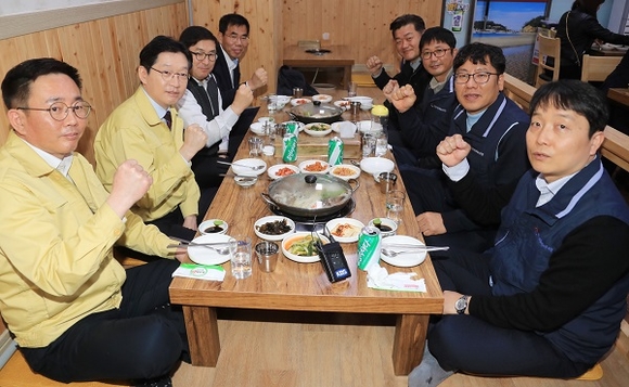11일 김경수 경남도지사가 코로나19로 어려움을 겪고 있는 창원 상남동 재래시장 식당을 방문했다.