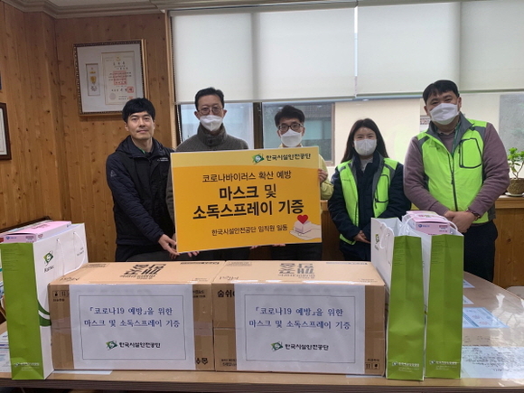 한국시설안전공단 노·사는 지난 10일 코로나19로 어려움을 겪고 있는 진주시 관내 복지시설에 마스크 700장과 소독스프레이 20개를 전달했다고 11일 밝혔다.