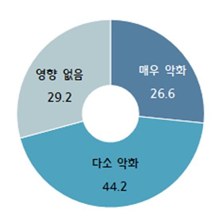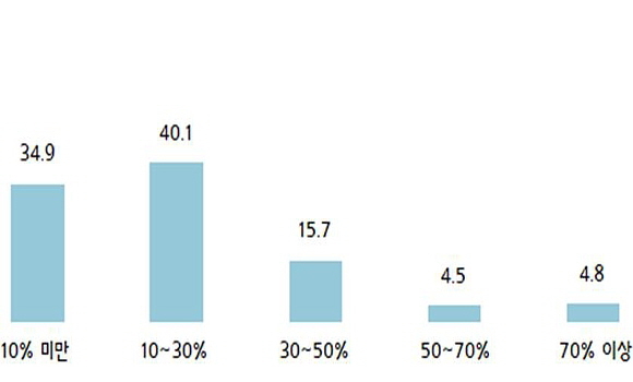 또 중소기업의 40.1%는 코로나19로 인해 전년대비 수출액이 10~30% 감소할 것이라고 내다봤다. 이어 10% 미만이 34.9%, 30~50% 감소할 것으로 응답한 기업이 15.7%를 기록했다.