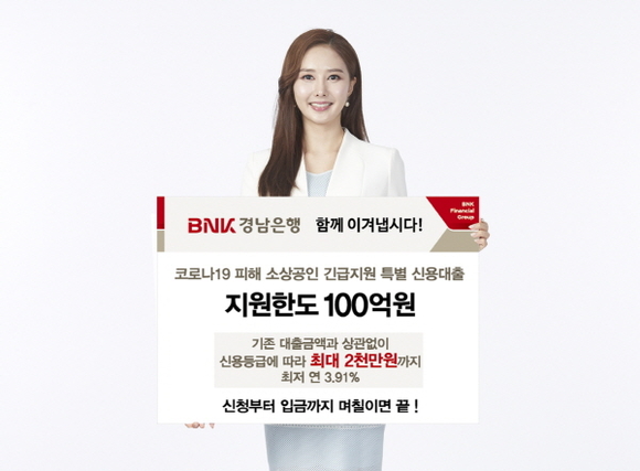 한편 BNK경남은행은 코로나19 피해 소상공인 긴급지원 특별 신용대출 시행과 별도로 ‘코로나19 금융지원 전담 창구’를 운영하고 있다.