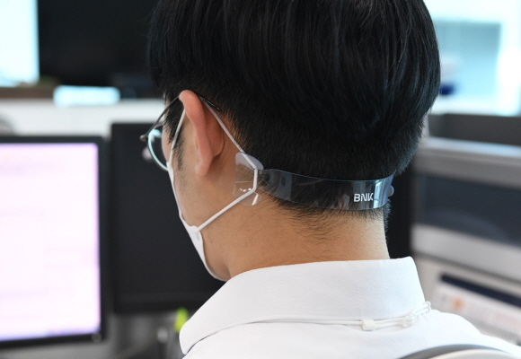BNK부산은행이 최근 코로나19의 전국적인 확산에 따라 장시간 마스크 착용으로 인한 귀 통증을 완화하기 위해 마스크용 고정 띠를 제작해 배포한다고 17일 밝혔다.