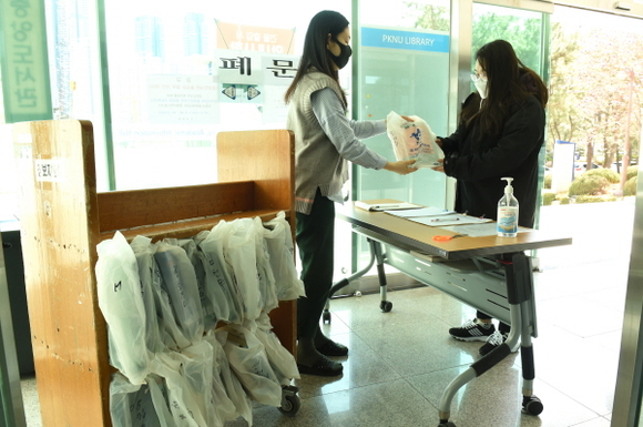 부경대 도서관은 책을 받으러 온 이용자들 간의 접촉을 최소화하기 위해 대출 신청이 한꺼번에 많이 들어와도 도서 대출 가능 문자 메시지는 시간 간격을 두고 발송한다. 또 이용자 방문을 분산하기 위해 대출 신청 도서 수령 시간도 오전 9시부터 오후 9시까지로 정했다.
