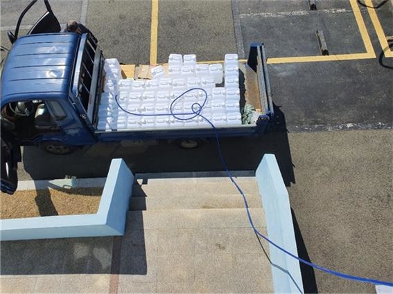 이플로우가 대구시에 기증한 소독수 1000L 모습 (사진=전기연구원 제공)