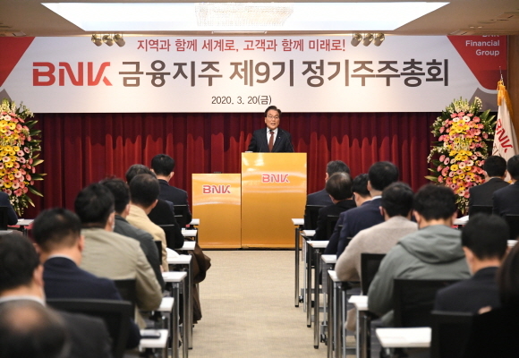 BNK금융지주가 20일 오전 10시 30분 부산은행 본사 23층 SKY홀에서 제9기 정기주주 총회를 열었다고 밝혔다.