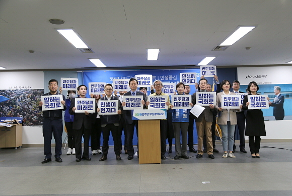 이날 오전 11시 부산시당사에서 열린 출범식에서 민주당 부산선대위는 ‘민생이 먼저다, 일하는 국회로, 민주당과 미래로’라는 슬로건을 공개했다.