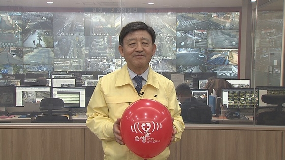 허성곤 김해시장이 지난 24일 '닥터헬기 소생 캠페인'에 참여해 눈길을 끌었다.