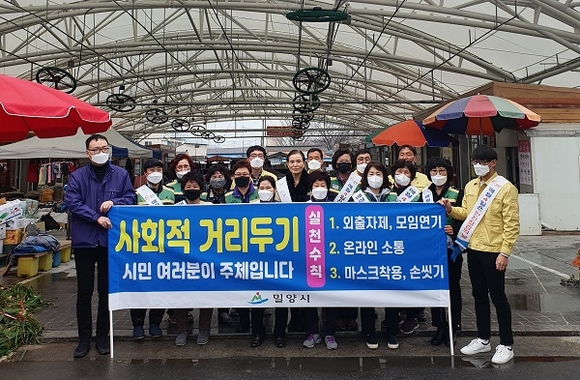 이날 캠페인은 밀양시청 공무원, 주부민방위기동대원 등 20명이 함께 안전신문고 설치·사용방법과 코로나19 확산 방지를 위한 '사회적 거리두기'에 대해 홍보했다.