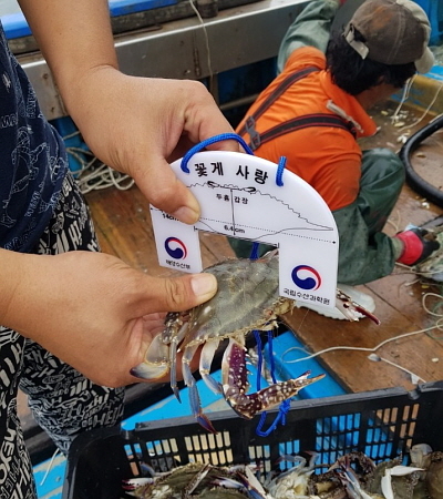 해양수산부 산하 국립수산과학원이 서해 대표 수산물 가운데 하나인 꽃게의 자원 회복을 위해 어업인들에 ‘어린 꽃게 보호용 포획 금지크기 측정자’ 1000개를 배포한다고 27일 밝혔다.