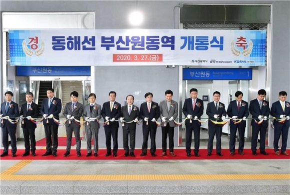 부산시가 27일 오전 11시 부산 동해선 원동역 개통을 기념하는 개통식을 진행했다.