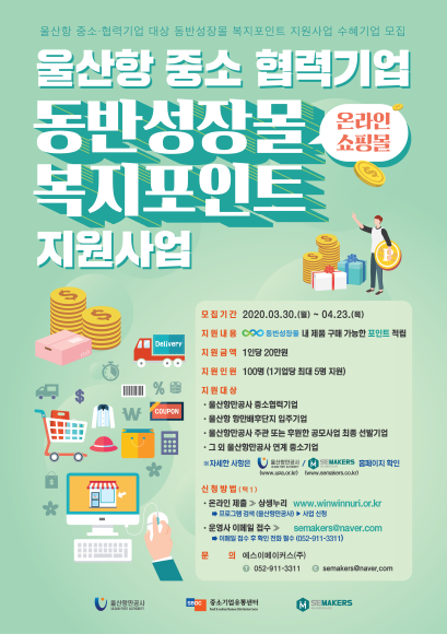 울산항만공사(이하 UPA)는 코로나19로 인한 어려움을 겪고 있는 UPA 중소협력기업 근로자의 생활안정 지원을 위해 동반성장몰 복지포인트 지원사업을 실시한다고 30일 밝혔다.