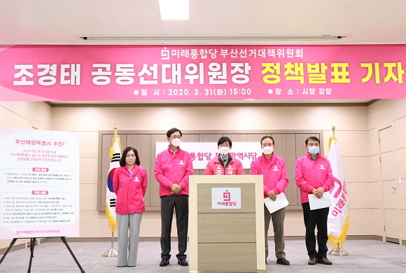 미래통합당 부산선거대책위원회(부산선대위)가 부산 남천동 소재 통합당 부산시당사에서 ‘21대 총선 정책 발표’ 기자회견을 열고 국회 제1호 법안에 ‘부산해양특별시’를 추진하겠다고 밝혔다.