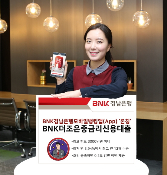 BNK경남은행은 BNK경남은행모바일뱅킹앱(App) 오픈에 맞춰 ‘BNK더조은중금리신용대출’을 론칭했다고 1일 밝혔다.