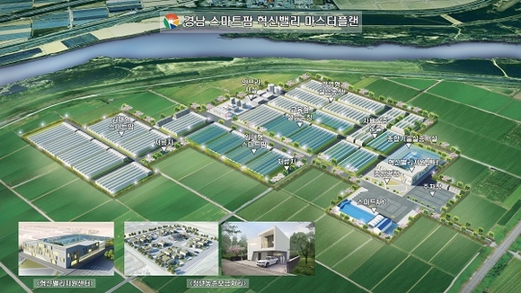 경남도는 지난해부터 밀양시 삼람진읍 임천리 일원 47.4ha 부지에 총사업비 876억 원으로 임대형스마트팜 시설 건립, 청년농촌보금자리 마련 등을 내용으로 '스마트팜 혁신밸리 조성 사업'을 추진 중이다.