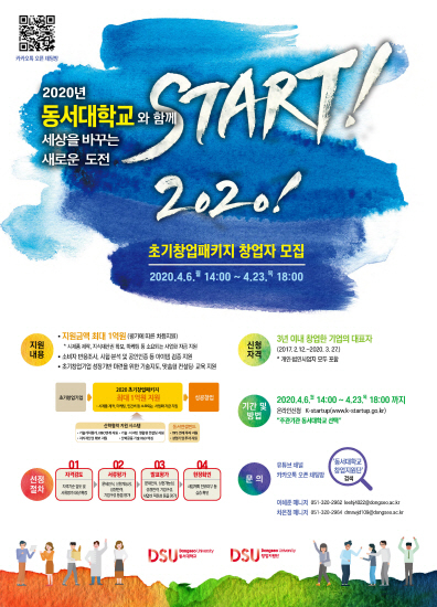 동서대학교는 유망 창업아이템 및 고급기술을 보유한 지역의 우수한 창업자를 발굴하고 창업활동을 지원하기 위해 ‘2020년 초기창업패키지’ 초기창업자를 오는 6일부터 23일까지 모집한다.
