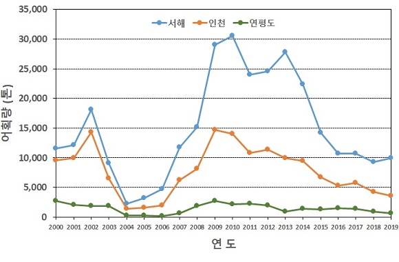 수산과학원에 따르면 인천해역의 월동기 표층 수온은 전년대비 0.8℃ 높았으며 서해 중부해역 꽃게 주 서식 층인 저층 수온도 8℃ 이상 유지되고 있는 상태다.