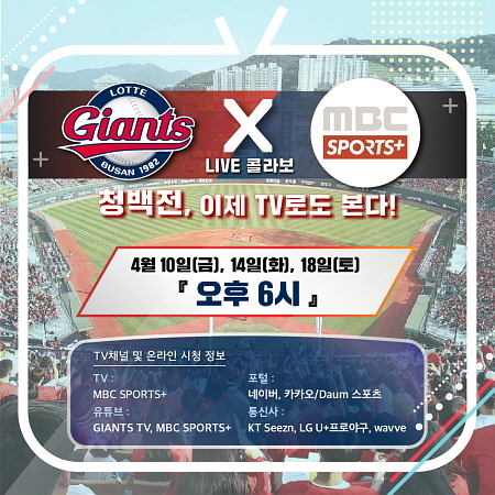 롯데 자이언츠가 오는 10, 14, 18일 오후 6시에 총 3차례의 청백전을 열고 MBC SPORTS+(엠스플) 방송국과 TV 및 인터넷으로 생중계할 예정이라고 9일 밝혔다.