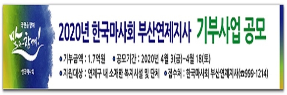 한국마사회 부산연제지사는 지역상생과 공기업으로서의 사회적 책임강화를 위해 '2020년 제2차 기부사업' 공모를 오는 18일까지 시행한다고 밝혔다.