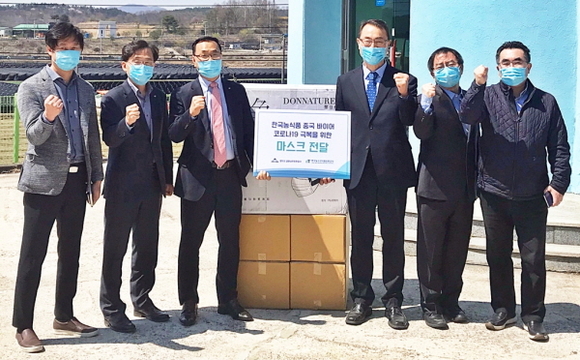 aT는 기부받은 마스크 1만장을 인삼수출협의회와 나주시사회복지협의회를 통해 79개 수출업체와 나주 지역 양로원, 보육원, 저소득층 등에 전달했다.