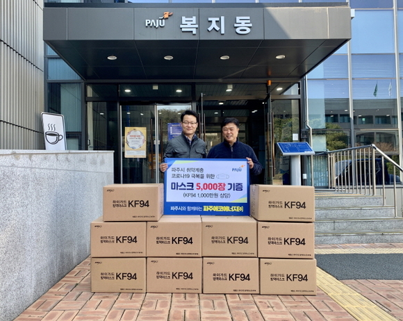 이번 기부는 코로나19 사태의 장기화로 마스크 구입에 어려움을 겪고 있는 파주시 취약계층을 지원하기 위해 마련됐다. 기부한 마스크는 파주시 사회복지과 등을 통해 파주시 내 사회복지시설 및 저소득층에 전달될 예정이다.