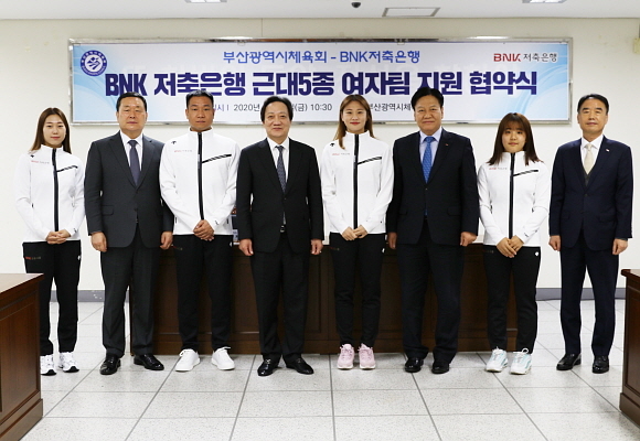 BNK저축은행과 부산시체육회가 10일 오전 부산시체육회관에서 근대5종 여자 실업팀 후원을 위한 협약식을 열었다고 밝혔다.