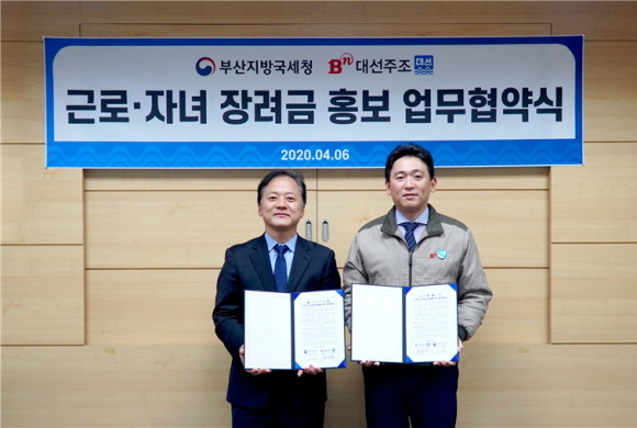 부산지방국세청이 5월 근로·자녀장려금 신청을 홍보하기 위해 ㈜무학, 대선주조㈜, 하이트진로㈜ 등 지역 5개 주류 제조회사와 업무협약을 체결했다고 10일 밝혔다.
