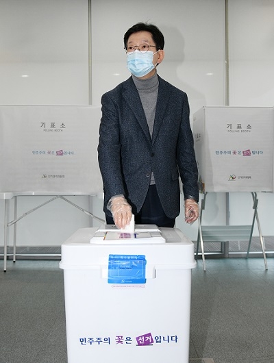 김 지사는 투표 후 언론과의 인터뷰에서 “코로나 위기로 대한민국이 많이 어려운데, 위기 극복의 힘은 국민 여러분에게 있다”며 “힘을 모아 이 위기를 극복할 수 있도록 투표에 꼭 참여해 달라”고 말했다.