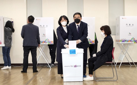 허성무 창원시장은 이날 오전 8시 상남동 사전투표소에서 소중한 한 표를 행사했다.