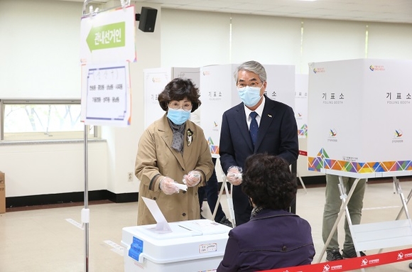 이날 박 교육감은 온라인 개학과 코로나19 비상 대응 업무로 바쁜 일정 중에도 부인 변화선 여사와 함께 사전투표소를 찾아 투표했다.