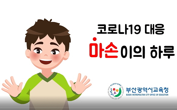부산시교육청이 코로나19 대응 생활수칙을 담은 ‘마손이의 하루’ 애니메이션과 시종 음원(수업 시작과 끝을 알리는 멜로디)을 제작해 각급학교에 배포했다고 13일 밝혔다.