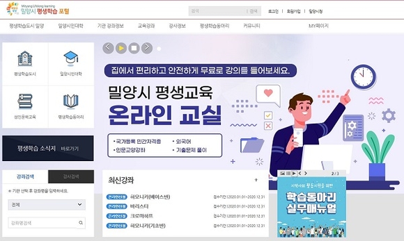 경남 밀양시는 '밀양시 평생학습 포털'에서 온라인을 통한 평생교육 서비스를 제공하고 있다고 13일 밝혔다.