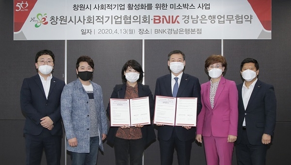경남은행은 13일 창원시 사회적기업협의회와 '창원시 사회적기업 활성화를 위한 미소박스 업무협약'을 체결했다.