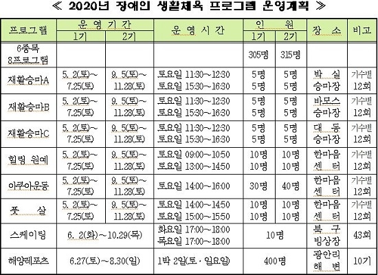 한편 부산시장애인체육회는 내달부터 프로그램을 본격적으로 운영한다는 방침이나, 코로나19 감염병 확산 진행 상황에 따라 운영 시기를 늦추는 등 일정 조정도 고려하고 있다.