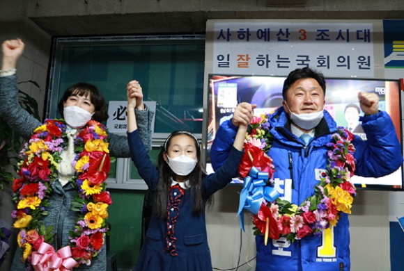 또 북강서갑 전재수는 50.5%인 4만 8733표를 얻어 4만 6795표(48.5%)를 받은 통합당 박민식 후보를 1938표차로 꺾고 자리를 지켰다.