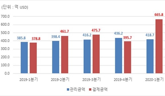 이에 따르면 이번 분기 외화증권 결제금은 역대 최대치를 기록한 반면 관리금액은 418억 7000만 달러를 기록해 직전분기 대비 17억 5000만 달러 감소한 것으로 집계됐다.