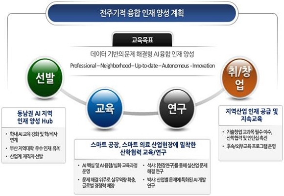 특히 부산대는 이번 사업을 통해 ‘세계 30위권 AI 대학원’을 목표로 AI 분야 전문교수를 확보해 AI 대학원 과정을 개설, 매년 45명의 석·박사급 고급인력을 양성한다는 방침이다. 또 AI 대학원 조직 설립 및 AI 연구인력 확보를 추진할 예정이다.