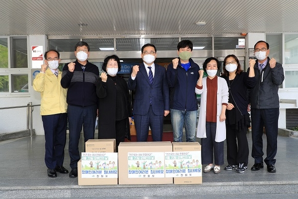 시는 코로나19 극복을 위해 시민과 기업이 기증한 마스크와 손소독제를 재단에 전달했다.