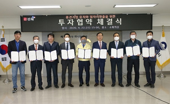 경남 김해시가 8개 기업을 유치하는 역대 최고 성과를 거둬 코로나19로 침체된 지역경제 살리기에 청신호가 되고 있다.